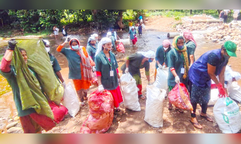 കൊട്ടിയൂരിൽ ശുചീകരണം നടത്തുന്ന ഹരിതകർമസേനാംഗങ്ങൾ