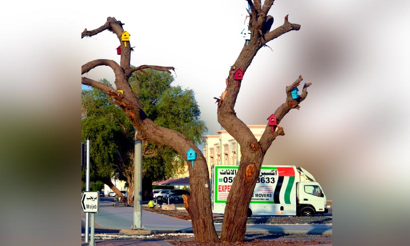 മരങ്ങൾ സംരക്ഷിക്കുന്നതിന് രാജ്യത്തെ വിവിധ വകുപ്പുകൾ വലിയ പ്രാധാന്യമാണ് നൽകുന്നത്. മരങ്ങൾ പടർന്നു പന്തലിക്കുമ്പോൾ കാറ്റിലും മറ്റും മറഞ്ഞു വീഴുന്നത് തടയാൻ ശിഖിരങ്ങൾ വെട്ടി മാറ്റുന്നത് പതിവാണ്. അത്തരത്തിൽ അൽഐൻ, ജീമിയിലെ ഒരു സിഗ്നലിനടുത്ത് ഗാഫ് മരത്തിന്റെ ശിഖരങ്ങൾ വെട്ടി മാറ്റുകയുണ്ടായി. തുടർന്ന് മരത്തിൽ പക്ഷികൾക്കായി നിരവധി കൂടുകൾ ഒരുക്കിയിരിക്കുകയാണ് അൽഐൻ നഗരസഭ.