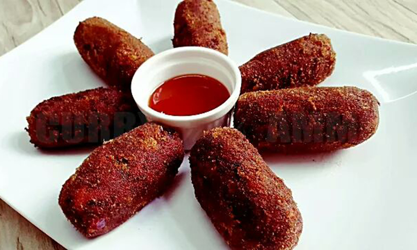 ചൂട് പോയ ശേഷം ചെറിയ ഉരുളകളായി എടുത്ത് സ്പ്രിങ് റോൾ ഷേപ്പിലാക്കി എഗ്ഗ് ബീറ്റ് ചെയ്തതിൽ ഡിപ്പ് ചെയ്ത് ബ്രഡ്ക്രംസിൽ റോൾ ചെയ്യുക. ശേഷം നല്ല ചൂടായ ഓയിലിൽ ഫ്രൈ ചെയ്ത് ചൂടോടെ ടൊമാറ്റോ സോസ് കൂട്ടി കഴിക്കാം.