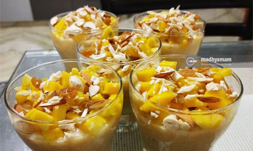 ശേഷം, ഇറക്കിവെച്ച് ചൂടാറാൻ ആയി മാറ്റിവെക്കുക. നന്നായി ആറിയ ശേഷം ഇതിലേക്ക് മാങ്ങയുടെ പൾപ്പ് ചേർത്തിളക്കുക. ഇതൊരു ബൗളിലേക്ക് ഒഴിച്ച് മുകളിൽ ചെറുതായി മുറിച്ചുവെച്ച മാങ്ങയും ഡ്രൈ ഫ്രൂട്സും വെച്ച് സെർവ് ചെയ്യാവുന്നതാണ്. രുചികരവും വ്യത്യസ്തവുമായ ഈ നോർത്ത് ഇന്ത്യൻ ഡിസ്സർട് എല്ലാവർക്കും ഇഷ്ടപ്പെടും തീർച്ച.