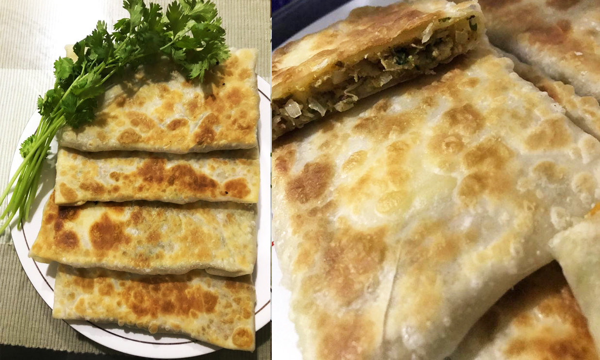 ഇനി നേരത്തെ കുഴച്ചുവെച്ച മൈദ വളരെ നേർമയായി പരത്തി എടുക്കുക. ഇതിലേക്ക് തയാറാക്കിയ ഫില്ലിങ് ചേർത്തു ചതുരത്തിൽ മടക്കിയെടുക്കുക. ഇവ പത്തിരി കല്ലിലിട്ട് രണ്ടുവശവും മൊരിച്ചെടുക്കുക.