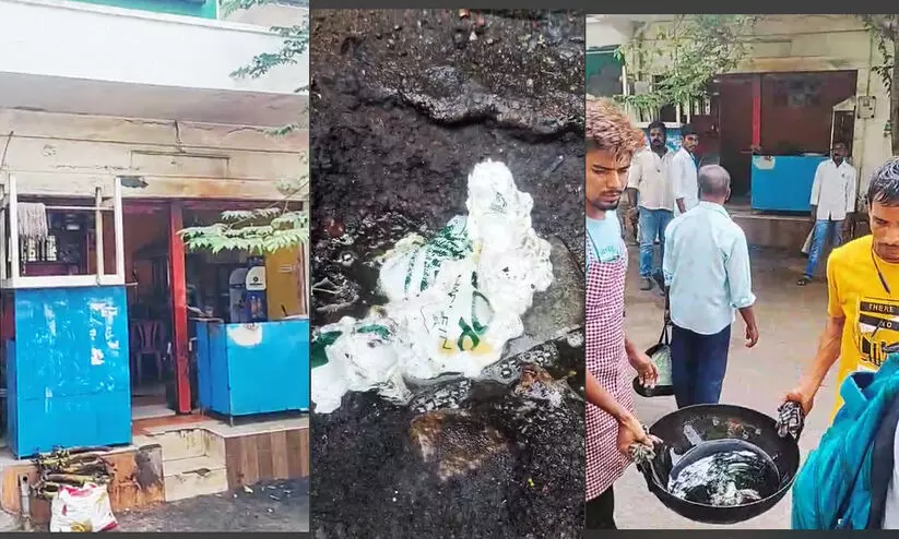 ആളുകൾ കൂടിയതോടെ, കടയിലുണ്ടായിരുന്നവർ എണ്ണയുടെ ഭൂരിഭാഗവും കടയുടെ മുന്നിലുള്ള റോഡ് സൈഡിലേക്ക് മറിച്ചുകളഞ്ഞു. സ്ഥലത്തെത്തിയ ആരോഗ്യവിഭാഗം നടത്തിയ പരിശോധനയിൽ മുമ്പ് ഉരുക്കിയതിന്റെ ബാക്കി പ്ലാസ്റ്റിക് കവറുകളും എണ്ണയും പരിസരത്തുനിന്ന് കണ്ടെത്തി.