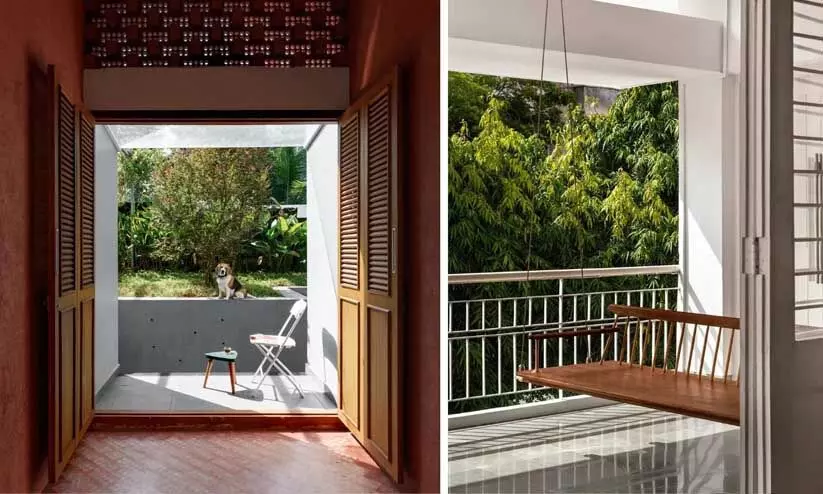ലിവിങ് റൂം ഒരു വലിയ ബാൽക്കണി ഏരിയയിലേക്ക് തുറക്കുന്നതാണെങ്കിൽ മനോഹരമായിരിക്കും. പ്രകൃതിദത്ത വെളിച്ചം ലഭിക്കും. സുരക്ഷക്ക് മുൻഗണന നൽകുന്ന കൈവരി പിടിപ്പിക്കാം. ഓപ്പൺ എയർ ബാൽക്കണിയിൽ വിവിധതരം പോട്ടഡ് മരങ്ങളും ചെടികളും കൊണ്ട് പച്ചപ്പുമൊരുക്കാം.