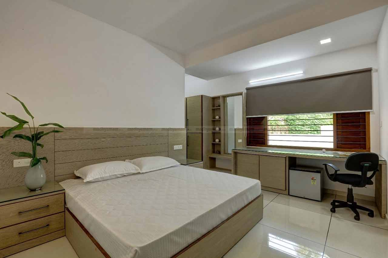 ലളിതമായ ഒരുക്കങ്ങളോടെയാണ് ബെഡ്റൂമുകളെലാം സജ്ജീകരിച്ചിട്ടുള്ളത്. സ്റ്റോറേജ് സൗകര്യവിധം വാഡ്രോബ് യൂനിറ്റുകളും എല്ലാം ‘യൂട്ടിലിറ്റി’ എന്ന ആശയത്തിന് മുൻതൂക്കം നൽകി ഡിസൈൻ ചെയ്തിട്ടുള്ളതാണ്.