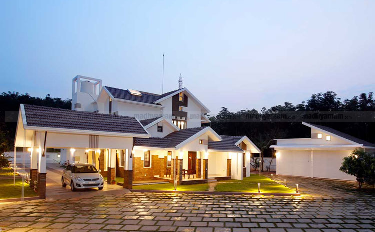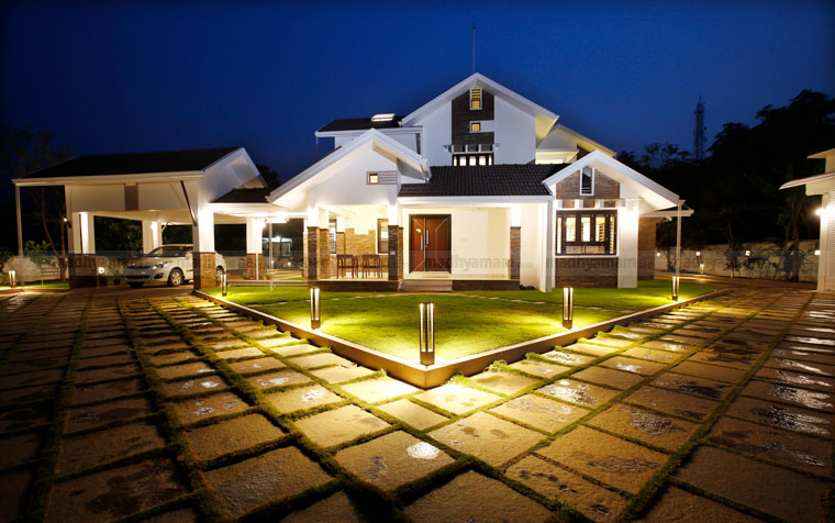 ഇരുവശവും തലയെടുപ്പോടെ നിൽക്കുന്ന തെങ്ങിൻ തോപ്പുകളും ചുറ്റുമുള്ള ഹരിതാഭയും വീട ിെൻറ എലിവേഷനെ എടുത്തു കാണിക്കുന്നു. ലെവൽ വ്യതിയാനം വരുത്തിയ വീടിെൻറ റൂഫിങ് രീതിയും അതിനിണങ്ങ ും വിധമുള്ള വീടിെൻറ പഠിപ്പുരയും ആരുമൊന്ന് നോക്കി പോകും.