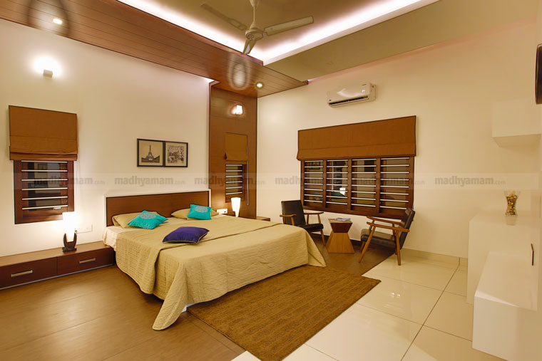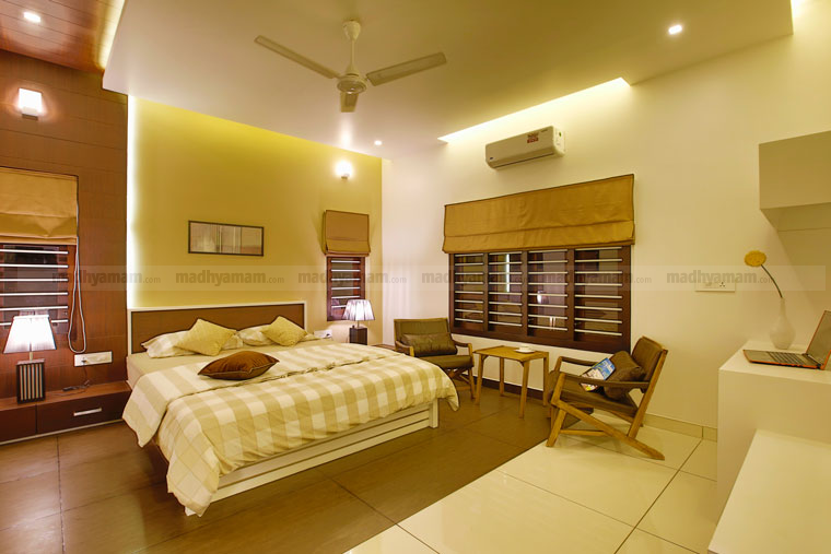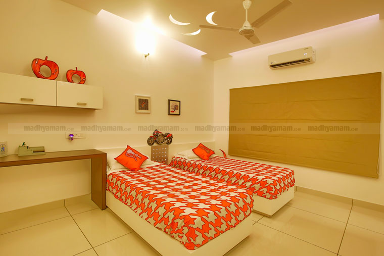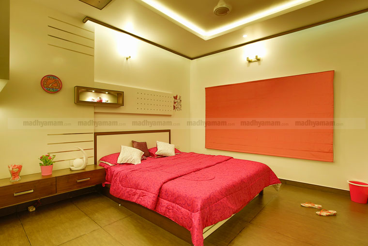 താമസിക്കുന്നവരുടെ മനസ്സിന് സന്തോഷം പകരുന്ന നിറങ്ങൾക്കാണ് പ്രാധാന്യം കൊടുക്കേണ്ടത്. അതിനാൽ വ്യത്യസ്തമായ കളർ തീമുകളുടെ അകമ്പടിയോടെയാണ് കിടപ്പ് മുറികളുടെ സജ്ജീകരണം. ഹെഡ് റെസ്റ്റിനും സീലിങ്ങിനുമൊക്കെ ഡിസൈൻ നയങ്ങൾ ഏർപ്പെടുത്തിയിട്ടുള്ളത് സൗന്ദര്യം ഇരട്ടിപ്പിക്കുന്നുണ്ട്.