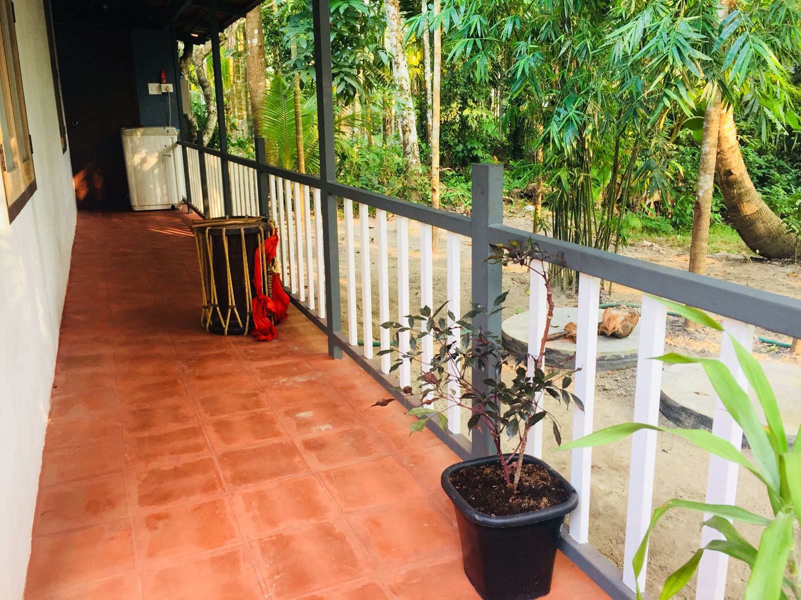 പൂര്ണമായും കളിമണ്ണില് നിര്മ്മിച്ച തറയോടുകളാണ് നിലത്ത് പതിച്ചിരിക്കുന്നത്. അകത്ത് അത്യാവശ്യത്തിനുള്ള ഇലക്ട്രിക് പോയിൻറുകള് മാത്രം. മുറിയില് ഒരു ലൈറ്റ്, ഒരു ഫാന്, പ്ലഗ് പോയിൻറ് എന്നിങ്ങനെ. ശുചിമുറികളിലും ആർഭാടമില്ല, ഒരു പൈപ്പും ക്ലോസറ്റുമാണ് ക്രമീകരിച്ചിരിക്കുന്നത്.