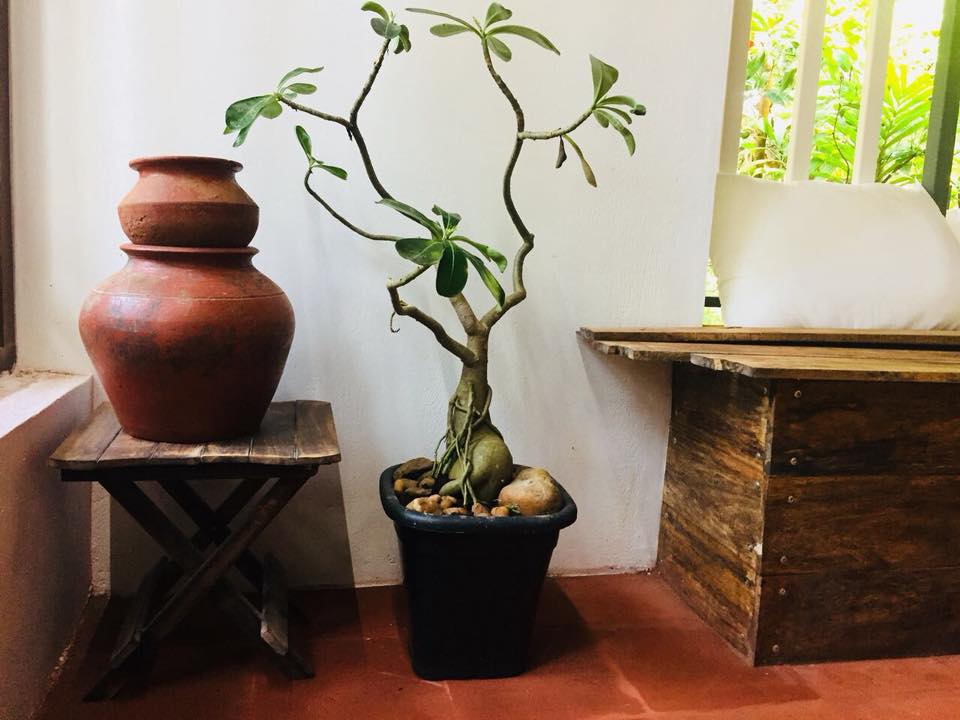 അകത്തളത്തെ അലങ്കരിക്കുന്നതിനും പ്രകൃതിദത്ത വസ്തുക്കളെ തന്നെയാണ് കൂട്ടുപിടിച്ചിരിക്കുന്നത്. ഹാളിൽ പഴയ മോഡൽ മഞ്ച പോലെയാണ് മരത്തിന്റെ ഇരിപ്പിടം ഒരുക്കിയിരിക്കുന്നത്. പിച്ചള പാത്രങ്ങളും കരിങ്കൽ, തടി ശിൽപങ്ങളും കുപ്പിപാത്രങ്ങളും ബോൻസായ്-കുഞ്ഞുചെടികളും അകത്തളത്ത് ഇടംപിടിച്ചിരിക്കുന്നു. തടിയിലുള്ള പഴയകാല സ്വിച്ച് ബോർഡും േക്ലാക്കുമെല്ലാം വീടിന് ആൻറിക് ലുക്ക് നൽകുന്നുണ്ട്.
