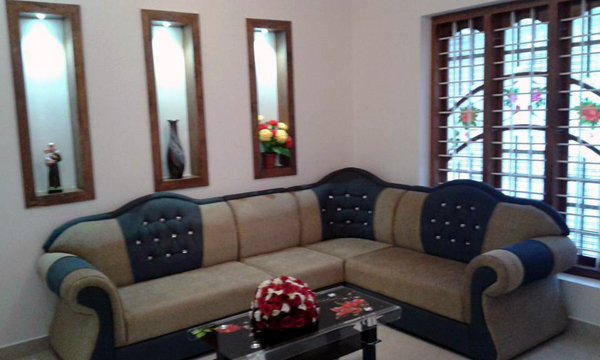 ലിവിങ് സ്പേസിൽ ഇൻറീരിയർ ഭംഗിക്ക്വേണ്ടി ക്യൂരിയോസിന്പകരം നിഷേ സ്പേസുകളാണ് നൽകിയത്. സീറ്റിങ് ഒരുക്കിയതിന്എതിർവശത്തെചുവരിൽ ടെക്സ്ച്ചർ പെയിൻറ് നൽകി ടി.വി സ്പേസാക്കി മാറ്റി