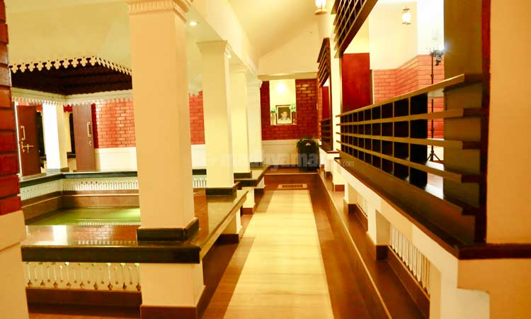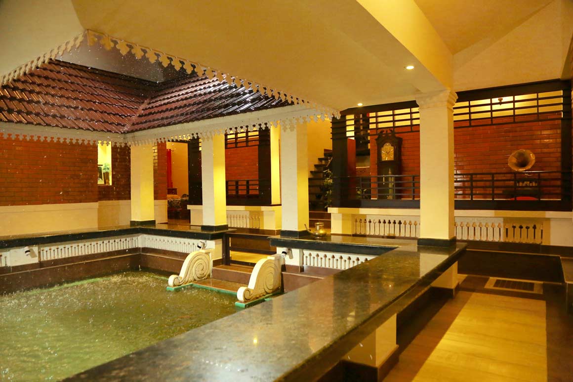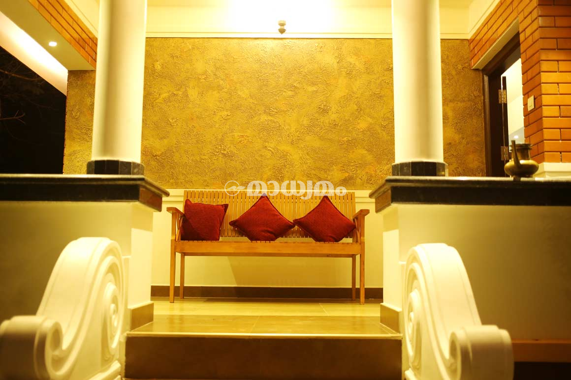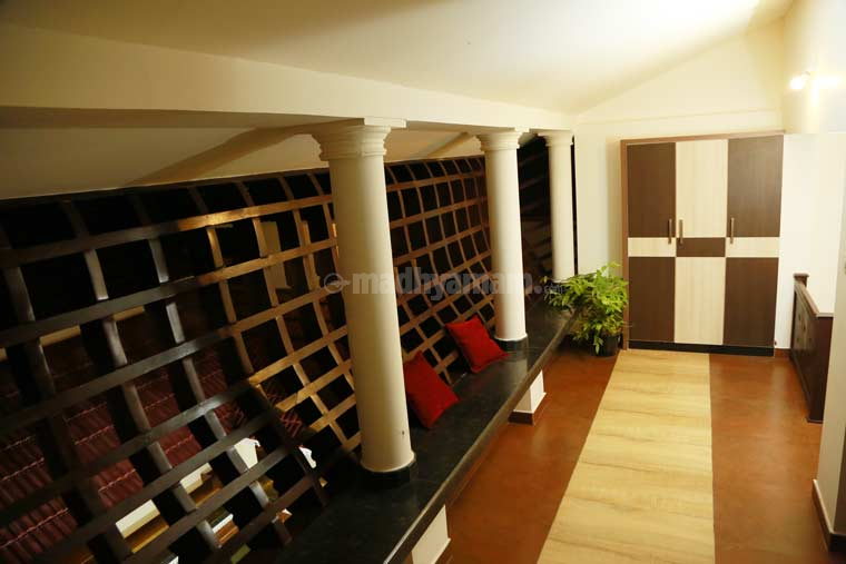 നടുമുറ്റത്തിനു ചുറ്റും നൽകിയിരിക്കുന്ന ചാരുപടി എത്രപേർക്ക് വേണമെങ്കിലും ഇരിക്കാനുള്ള സൗകര്യമാണ്. പാട്ടുപാടാനും തബല വായിക്കാനും ഹാർമോണിയം വായിക്കാനുമൊെക്ക ഇൗ സ്പേസാണ് ഉപയോഗിക്കുന്നത്.