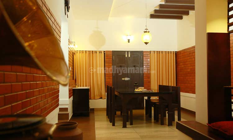 ഇൻറീരിയറിൽ നൽകിയിരിക്കുന്ന തടിയുടെ പാനലിങ്ങും പാർട്ടീഷനുകളും ആൻറിക് ഫർണീചറും വീടിനെ തീമിനോട് ചേർന്നു നിൽക്കുന്നു. ഉചിതമായ ലൈറ്റ്ഫിറ്റിങ്ങുകളും ഉൾത്തടങ്ങൾക്ക് നല്ല ആംപിയൻസ് നൽകുന്നു. ഭിത്തിയിലെ ടെക്സ്ച്ചറുകളും ഇൻറീരിയർ ഹൈലെറ്റാണ്.