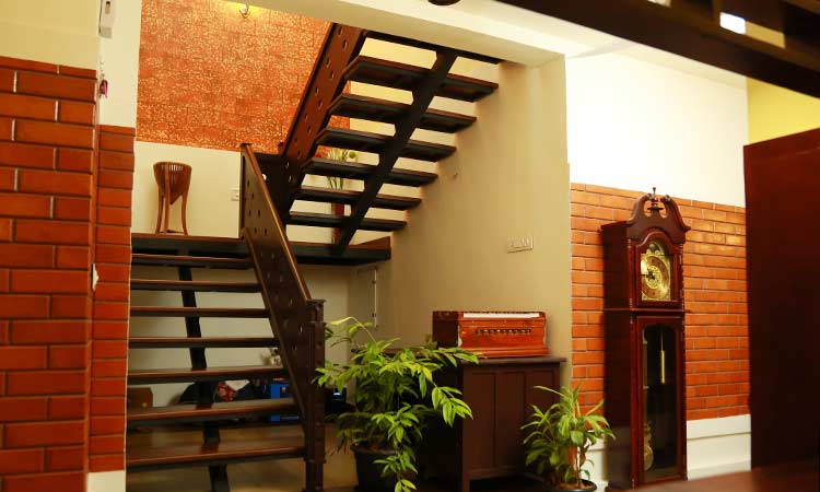 സെൻറർ സപ്പോർട്ടിങ് സ്റ്റെയർകേസാണ് മറ്റൊരു ഹൈലൈറ്റ്. സ്റ്റെയറിനു താഴെയുള്ള ഭാഗം ഉപയുക്തമായി ഒരുക്കിയിരിക്കുന്നു. ൈഡനിങ് ഏരിയയോട് ചേർത്തുതന്നെ ലേഡീസ് സിറ്റിങ് എന്നിവയും കൂട്ടിയിണക്കി.