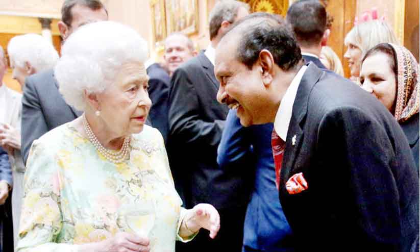 text_fields2017ലെ ക്വീൻസ് അവാർഡ് വേളയിൽ ബക്കിങ്ഹാം കൊട്ടാരത്തിൽവെച്ച് എലിസബത്ത് രാജ്ഞിയുമായി കൂടിക്കാഴ്ച നടത്തുന്ന എം.എ. യൂസുഫലി