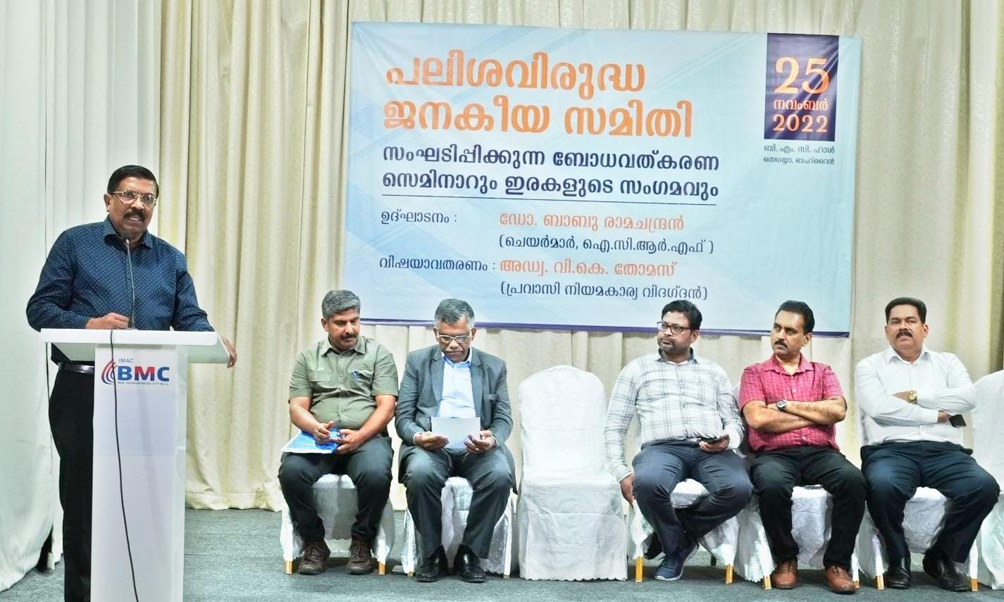 ഐ.സി.ആർ.എഫ് വൈസ് ചെയർമാൻ കൂടിയായ അഡ്വ. വി.കെ. തോമസ് നിയമ ബോധവത്കരണ പ്രഭാഷണം നടത്തി. സദസ്യരുടെ ചോദ്യങ്ങൾക്ക് അദ്ദേഹം മറുപടിയും നൽകി. ബി.എം.സി ചെയർമാൻ ഫ്രാൻസിസ് കൈതാരത്ത്, സാമൂഹിക, സാംസ്കാരിക രംഗത്തെ പ്രമുഖരായ അഡ്വ. മാധവൻ കല്ലത്ത്, പങ്കജ് നെല്ലൂർ, റസാഖ് മൂഴിക്കൽ, ഷാഫി പറക്കട്ട, ശ്രീധർ തേറമ്പിൽ, ഷാജി കാർത്തികേയൻ, ബിനു കുന്നന്താനം, ബദറുദ്ദീൻ പൂവാർ, അബൂബക്കർ ഹാജി, നവാസ് കുണ്ടറ, അഷ്കർ പൂഴിത്തല, രാമത്ത് ഹരിദാസ്, കമാൽ മുഹിയുദ്ധീൻ, നൗഷാദ് അമ്മാനത്ത്, ലത്തീഫ് കോളിക്കൽ, സിനു കക്കട്ടിൽ, അനീഷ്, വിനു ക്രിസ്റ്റി, സുഹൈൽ, ചന്ദ്രബോസ്, സുധി പുത്തൻവേലിക്കര, ഷാഫി തുടങ്ങിയവർ ജനകീയ ചർച്ചയിൽ പങ്കെടുത്ത് സംസാരിച്ചു.