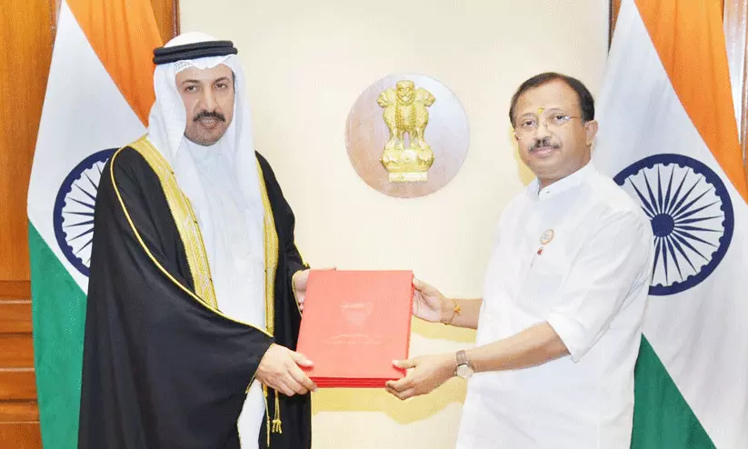 text_fieldsബഹ്റൈൻ വിദേശകാര്യ മന്ത്രാലയത്തിലെ രാഷ്ട്രീയകാര്യ അണ്ടർ സെക്രട്ടറി ഡോ. ശൈഖ് അബ്ദുല്ല ബിൻ അഹ്മദ് ആൽ ഖലീഫയിൽനിന്ന് ഇന്ത്യൻ വിദേശകാര്യ സഹമന്ത്രി വി. മുരളീധരൻ അംഗീകാര പത്രം ഏറ്റുവാങ്ങുന്നു