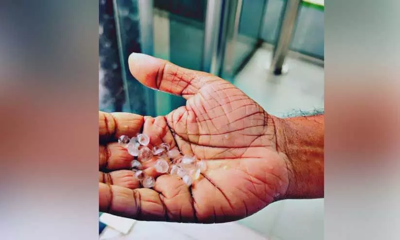 ഹിദ്ദിൽ ആലിപ്പഴം പെയ്തപ്പോൾ ഫോട്ടോ: കാസിം പാടത്തകായിൽ