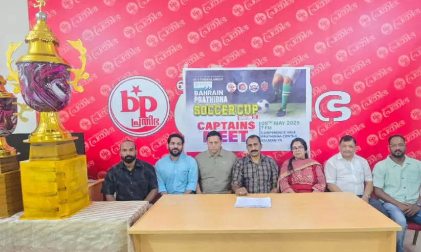 ബഹ്റൈൻ പ്രതിഭ കേന്ദ്ര കായിക വേദി ബഹ്റൈൻ കെ.എഫ്.എയുമായി ചേർന്ന് സംഘടിപ്പിക്കുന്ന പ്രതിഭ സോക്കർ കപ്പ് മൂന്നാം സീസണിന്റെ ഭാഗമായുള്ള ടീമുകളുടെ മീറ്റിങ് പ്രതിഭ ഹാളിൽ ചേർന്നു. പ്രസ്തുത ചടങ്ങിൽ സോക്കർ കപ്പിന്റെ മുഖ്യപ്രായോജകരായ ഫർസാന ഗ്രൂപ്പിന്റെ മാനേജിങ് ഡയറക്ടർ രശ്മി രാമചന്ദ്രൻ ടൂർണമെന്റിലെ വിജയികൾക്കായുള്ള ട്രോഫികൾ പ്രകാശിപ്പിച്ചു. പ്രതിഭ വൈസ് പ്രസിഡന്റും സോക്കർകപ്പ് സംഘാടക സമിതി ജനറൽ കൺവീനറുമായ നൗഷാദ് പൂനൂർ സ്വാഗതം ആശംസിച്ച ചടങ്ങിന് പ്രതിഭ കേന്ദ്ര കായികവേദി കൺവീനർ ഷിജു അധ്യക്ഷത വഹിച്ചു.