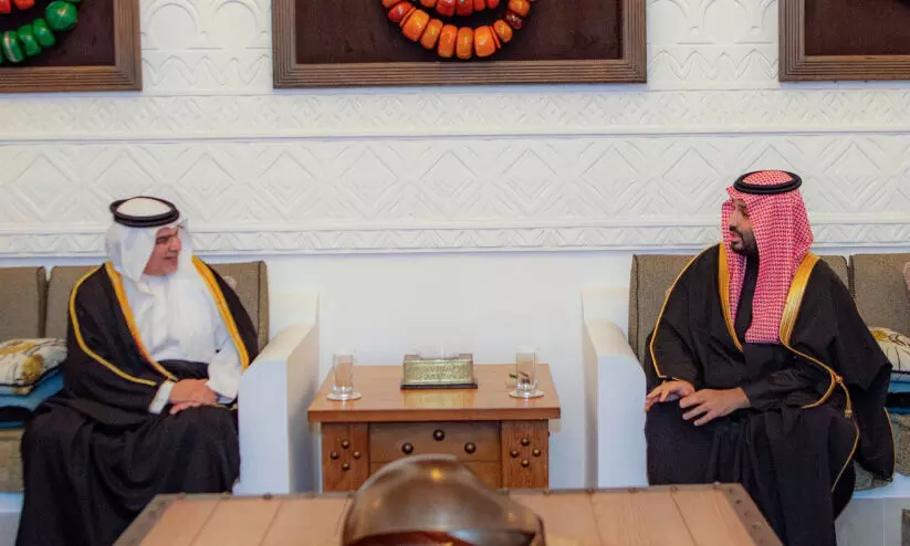 മനാമ: ബഹ്റൈൻ കിരീടാവകാശിയും പ്രധാനമന്ത്രിയുമായ പ്രിൻസ് സൽമാൻ ബിൻ ഹമദ് ആൽ ഖലീഫ, സൗദി കിരീടാവകാശിയും പ്രധാനമന്ത്രിയുമായ പ്രിൻസ് മുഹമ്മദ് ബിൻ സൽമാൻ ബിൻ അബ്ദുൽ അസീസ് അൽ സുഊദുമായി കൂടിക്കാഴ്ച നടത്തി.