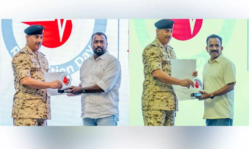 മനാമ: ബ്ലഡ് ഡോണേഴ്സ് കേരള ബഹ്റൈൻ ചാപ്റ്റർ രക്തദാനരംഗത്ത് ചെയ്തുവരുന്ന പിന്തുണക്ക് അവാലിയിലെ മുഹമ്മദ് ബിൻ ഖലീഫ ബിൻ സൽമാൻ അൽ ഖലീഫ സ്പെഷലിസ്റ്റ് കാർഡിയാക് സെന്ററിന്റെ ആദരവ് ബ്രിഗേഡിയർ ഡോ. ഫഹദ് ഖലീഫ അൽ ഖലീഫ കൈമാറി. ബി.ഡി.കെ ബഹ്റൈൻ ചെയർമാൻ കെ.ടി. സലിം, പ്രസിഡന്റ് റോജി ജോൺ, വൈസ് പ്രസിഡന്റ് സുരേഷ് പുത്തൻവിളയിൽ എന്നിവർക്ക് ബി.ഡി.കെ ബഹ്റൈൻ രക്തദാന രംഗത്ത് നടത്തിവരുന്ന സന്നദ്ധ സേവനങ്ങൾക്ക് സർട്ടിഫിക്കറ്റും ഉപഹാരവും ലഭിച്ചു.
