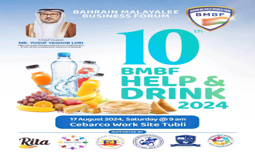 text_fieldsമനാമ: ബഹ്റൈൻ മലയാളി ബിസിനസ് ഫോറത്തിന്റെ കീഴിൽ പ്രവർത്തിക്കുന്ന ബി.എം.ബി.എഫ് ഹെൽപ് ആൻഡ് ഡ്രിങ്ക് ജീവകാരുണ്യ പദ്ധതിയുടെ 10ാം വാർഷികം തൂബ്ലിയിലെ സിബാർകോയിൽ നടക്കും.