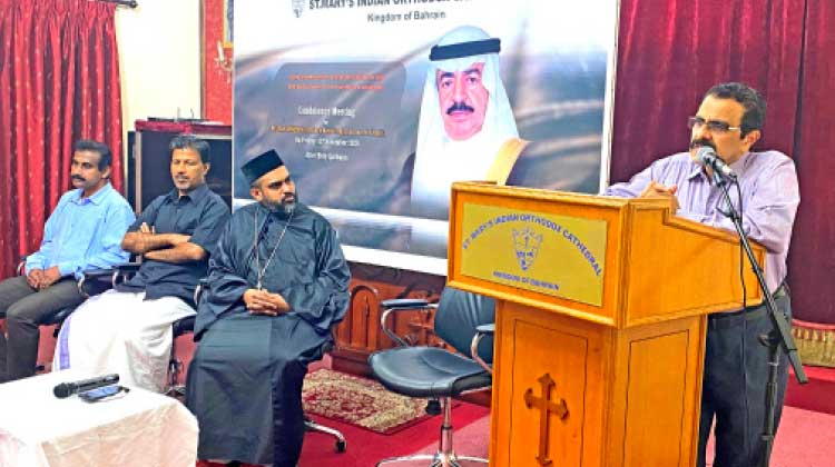 മനാമ: പ്രിന്സ് ഖലീഫ ബിന് സല്മാന് ആല് ഖലീഫക്ക് ബഹ്റൈന് സെൻറ് മേരീസ് ഇന്ത്യന് ഓര്ത്തഡോക്സ് കത്തീഡ്രല് ആദരാഞ്ജലി അർപ്പിച്ചു. അനുശോചന യോഗത്തിൽ ഇടവക വികാരി ഫാ. ബിജു ഫിലിപ്പോസ് അധ്യക്ഷത വഹിച്ചു.