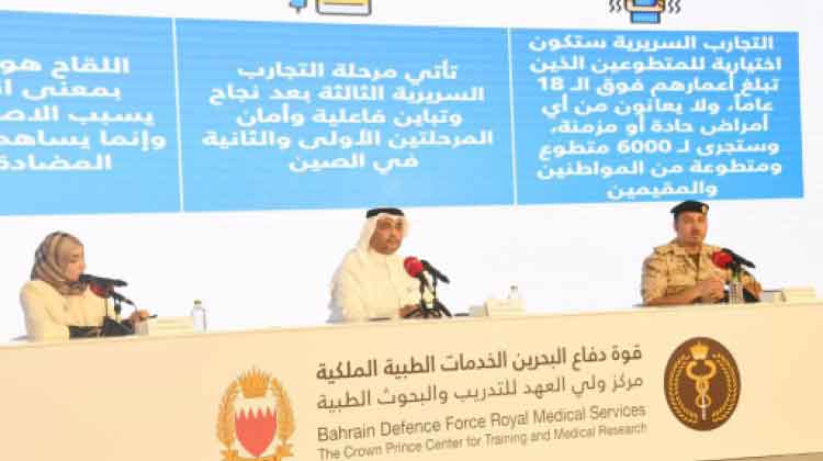 രാജ്യത്ത് നടത്തുന്ന കോവിഡ് വാക്സിെൻറ മൂന്നാം ഘട്ട ക്ലിനിക്കൽ പരീക്ഷണത്തെക്കുറിച്ച് ബി.ഡി.എഫ് ഹോസ്പിറ്റലിലെ സാംക്രമിക രോഗ വിദഗ്ധനും കോവിഡ് പ്രതിരോധത്തിനുള്ള നാഷനൽ ടീം അംഗവുമായ ലഫ്. കേണൽ മനാഫ് അൽ ഖത്താനി വിശദീകരിച്ചു. ചൈനയിൽ ഒന്നും രണ്ടും ഘട്ട പരീക്ഷണങ്ങൾ വിജയിച്ചതിനുശേഷമാണ് വാക്സിൻ മൂന്നാം ഘട്ട പരീക്ഷണത്തിന് എത്തുന്നത്. ലോകത്തിലെ ഏറ്റവും വലിയ ആറാമത്തെ മരുന്ന് നിർമാണ കമ്പനിയായ സിനോഫാം സി.എൻ.ബി.ജി ഉൽപാദിപ്പിച്ച ഇൗ വാക്സിൻ യു.എ.ഇക്ക് പിന്നാലെയാണ് ബഹ്റൈനിലും ക്ലിനിക്കൽ പരീക്ഷണത്തിന് എത്തുന്നത്. യു.എ.ഇയിലെ നിർമിതബുദ്ധി കമ്പനിയായ ജി42 ഹെൽത്കെയറുമായി സഹകരിച്ചാണ് പരീക്ഷണം.