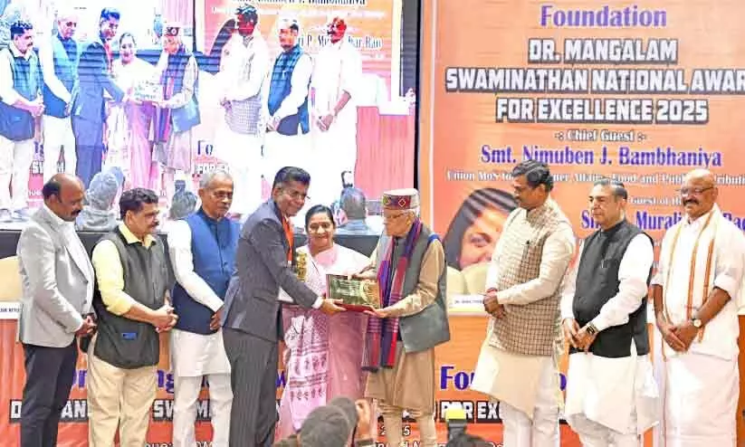ഡോ. മംഗളം സ്വാമിനാഥൻ പ്രവാസി ഭാരതീയ എക്സലൻസ് അവാർഡ് പമ്പാവാസൻ നായർക്ക് സമ്മാനിച്ചു