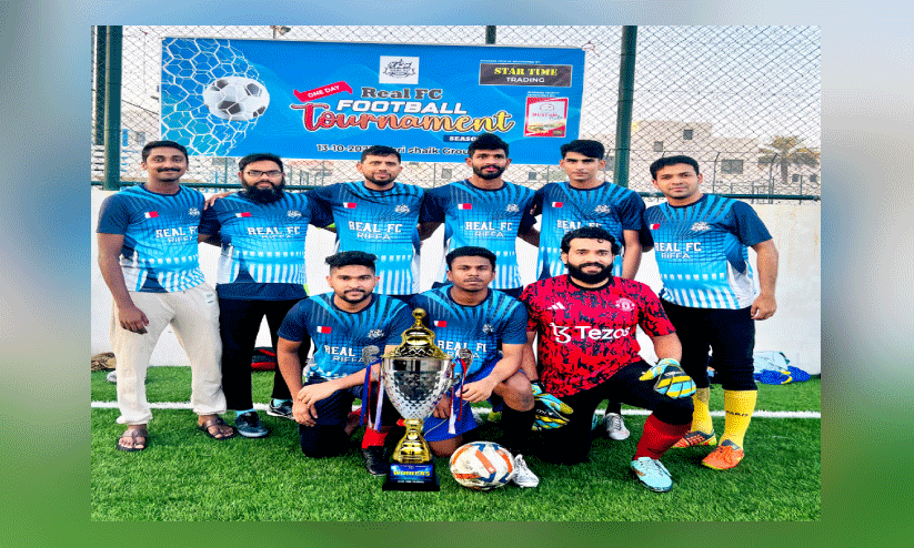 മനാമ: റിയൽ FC ക്ലബ് റിഫ സംഘടിപ്പിച്ച ഒന്നാമത് ഇന്റേണല് ടുർണമെന്റിൽ റിയൽ വാരിയേസ് ചാമ്പ്യൻമാരായി. ഫൈനലിൽ എതിരില്ലാത്ത ഒരു ഗോളിന് റിയൽ സ്ട്രൈക്കേസിനെയാണ് പരാജയപ്പെടുത്തിയത്. ടുർണമെന്റിലെ മികച്ച കളിക്കാരനായി റിയൽ സ്ട്രൈക്കേഴ്സിലെ ജിഫിനേയും മികച്ച ഗോൾ കീപ്പറായി റിയൽ വാരിയേഴ്സിലെ റംഷീദ് റഹ്മാനെയും തിരഞ്ഞെടുത്തു. വിന്നേഴ്സിനുള്ള ട്രോഫി സ്റ്റാർ ടൈം ട്രേഡിംങ്ങും റണ്ണേഴ്സിനുള്ള ട്രോഫി മ്യൂസിയം കഫേയും സമ്മാനിച്ചു. റിഫാ ജാരി ഷെയ്ഖ് ഗ്രൗണ്ടിൽ വെച്ചായിരുന്നു മത്സരം സംഘടിപ്പിച്ചത്. മത്സരം അബൂബക്കർ ഖാസിം ഉദ്ഘാടനം ചെയിതു.നിസാർ, ഷമീർ, ഫസലു റഹ്മാൻ,മഹ്ബൂബ്, ഷിജു എന്നിവർ മത്സരത്തിന് നേതൃത്വം നൽകി.