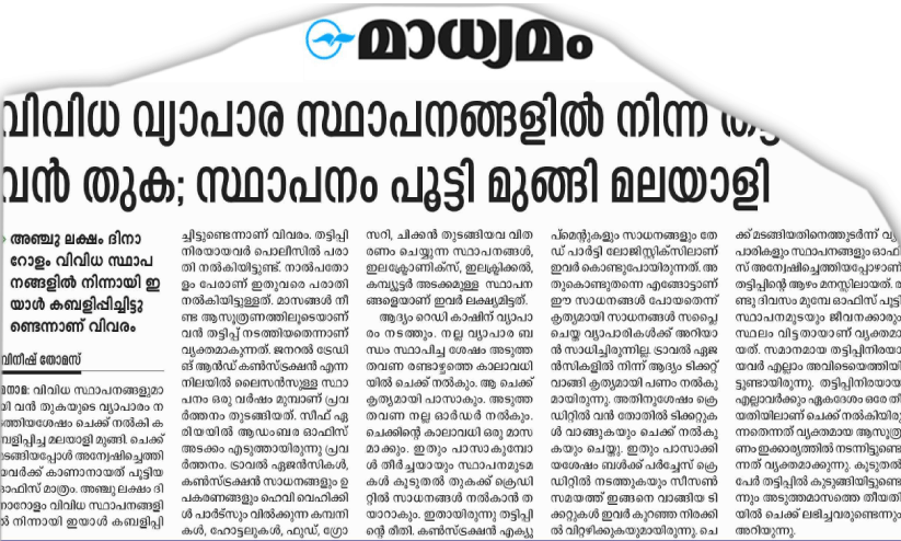 അഞ്ചുലക്ഷം ദീനാറോളം വിവിധ സ്ഥാപനങ്ങളിൽ നിന്നായി സ്ഥാപനയുടമകൾ കബളിപ്പിച്ചിട്ടുണ്ടെന്നായിരുന്നു പരാതി. തട്ടിപ്പിനിരയായ നാൽപതോളം പേർ പൊലീസിൽ പരാതി നൽകിയിരുന്നു. ജനറൽ ട്രേഡിങ് ആൻഡ് കൺസ്ട്രക്ഷൻ എന്ന നിലയിൽ ലൈസൻസുള്ള സ്ഥാപനം സീഫ് ഏരിയയിലാണ് പ്രവർത്തിച്ചിരുന്നത്. കേരളത്തിലേക്ക് കടന്ന തിരുവനന്തപുരം സ്വദേശി അടക്കമുള്ളവർക്കെതിരെ ശക്തികുളങ്ങര പൊലീസ് കഴിഞ്ഞമാസം കേസെടുത്തിരുന്നു.