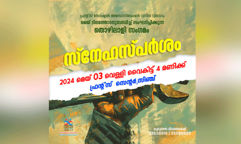 text_fieldsമനാമ : ഫ്രന്റ്സ് സോഷ്യൽ അസോസിയേഷൻ വനിത വിഭാഗം മേയ് ദിനത്തോടനുബന്ധിച്ച് സംഘടിപ്പിക്കുന്ന തൊഴിലാളി സംഗമം സിഞ്ചിലെ ഫ്രന്റ്സ് ആസ്ഥാന മന്ദിരത്തിൽ വെള്ളിയാഴ്ച വൈകീട്ട് നാലിന് നടക്കും.കുറഞ്ഞ വരുമാനക്കാരായ മലയാളി വനിതകൾക്കായിട്ടാണ് സ്നേഹസ്പർശം പരിപാടി സംഘടിപ്പിക്കുന്നത്. ങ്ങളുടെ അനുഭവങ്ങൾ പങ്കുവെക്കാനും, സർഗ വാസനകൾ പ്രകടിപ്പിക്കാനുമുള്ള അവസരം ഒരുക്കുക എന്നതാണ് പരിപാടിയുടെ ഉദ്ദേശ്യം.ഏറ്റവും കൂടുതൽ കാലം ബഹ്റൈനിൽ ജോലി ചെയ്തവരെ ചടങ്ങിൽ ആദരിക്കും. പങ്കെടുക്കുന്നവരെ മുൻകൂട്ടിയുള്ള രജിസ്ട്രേഷനിലൂടെ തിരഞ്ഞെടുത്തു. കൂടുതൽ വിവരങ്ങൾക്ക് 33538916, 35088923 എന്നീ നമ്പറുകളിൽ ബന്ധപ്പെടാവുന്നതാണെന്ന് സ്നേഹസ്പർശം പ്രോഗ്രാം കൺവീനർ റഷീദ സുബൈർ അറിയിച്ചു.