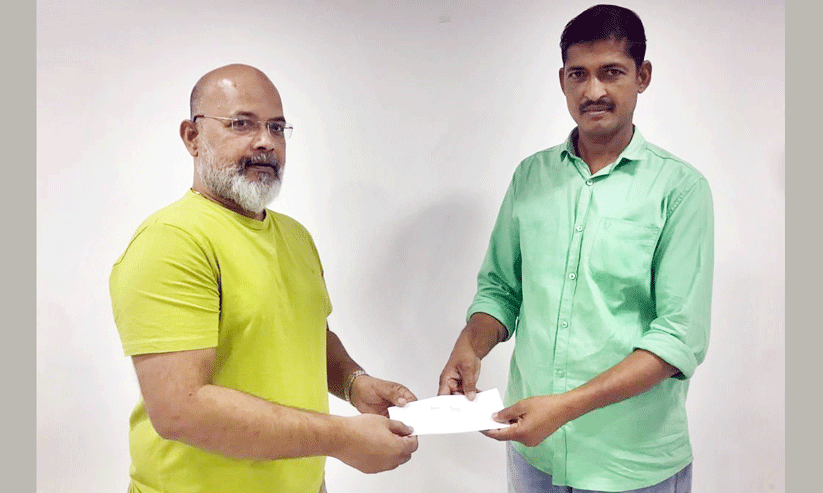 ഇബ്രാഹിമിന്റെ കുടുംബത്തിനു വേണ്ടിയുള്ള സഹായം ഹോപ് പ്രസിഡന്റ് സാബു ചിറമേൽ കോഓഡിനേറ്റർ പ്രകാശ് പിള്ളക്ക് കൈമാറുന്നു