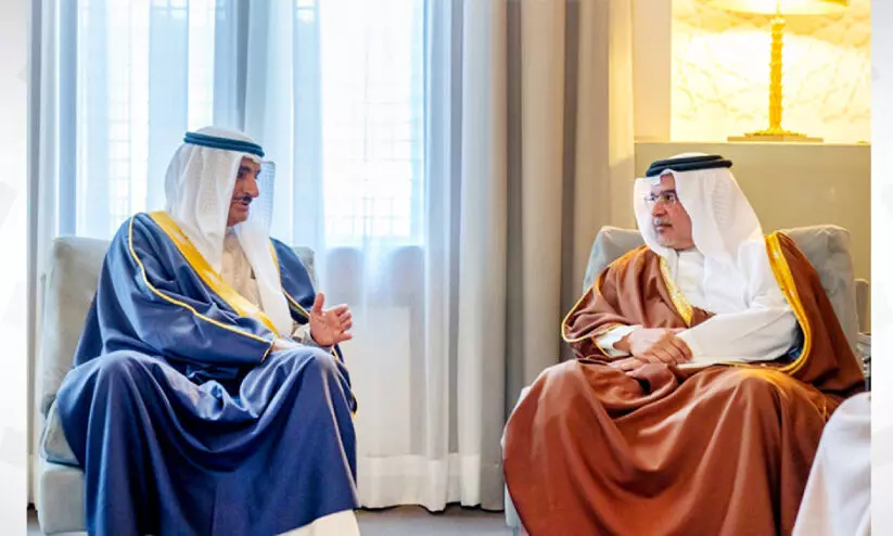 മനാമ: കിരീടാവകാശിയും പ്രധാനമന്ത്രിയുമായ പ്രിൻസ് സൽമാൻ ബിൻ ഹമദ് അൽ ഖലീഫ, ഹയർ അർബൻ പ്ലാനിങ് കമ്മിറ്റിയുടെ പുതിയ വൈസ് ചെയർമാൻ ശൈഖ് സൽമാൻ ബിൻ അബ്ദുല്ല അൽ ഖലീഫയുമായി ചർച്ച നടത്തി.