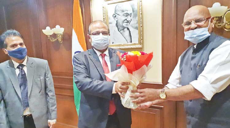 ബി.െഎ.ഇ.സി.എഫ് പ്രസിഡൻറ് സോവിച്ചൻ ചേന്നാട്ടുശേരി ഇന്ത്യൻ അംബാസഡർ പിയൂഷ് ശ്രീവാസ്തവയെ