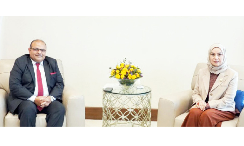 ഇന്ത്യൻ അംബാസഡർ പിയൂഷ് ശ്രീവാസ്തവ പാർലമെൻറ് അധ്യക്ഷ ഫൗസിയ ബിൻത് അബ്ദുല്ല സൈനലുമായി ചർച്ച നടത്തുന്നു