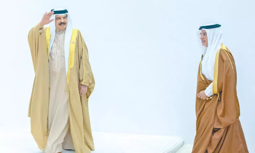 ചെയ്യാനെത്തിയ രാജാവ് ഹമദ് ബിൻ ഈസ ആൽ ഖലീഫ. കിരീടാവകാശി പ്രിൻസ് സൽമാൻ സമീപം