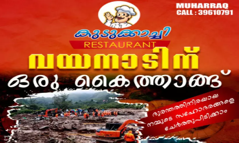 മനാമ: വയനാട് മുണ്ടക്കൈയിലുണ്ടായ ദുരന്തത്തിൽ ഇരകളായവർക്ക് തങ്ങളാൽ കഴിയുന്ന സഹായവുമായി റസ്റ്റാറന്റ്. മുഹറഖിലെ കുടുക്കാച്ചി റസ്റ്റാറന്റാണ് ഇരകളാക്കപ്പെട്ടവർക്ക് സഹായം സ്വരൂപിക്കാനായി ബിരിയാണി ചലഞ്ച് നടത്തുന്നത്. ഈ മാസം രണ്ടിന് (വെള്ളിയാഴ്ച) ഉച്ചക്ക് 12 മുതൽ വൈകുന്നേരം മൂന്ന് വരെയാണ് ബിരിയാണി ചലഞ്ച്. സുമനസ്സുകൾ പങ്കെടുക്കണമെന്ന് മാനേജ്മെന്റ് പ്രതിനിധികൾ അറിയിച്ചു.