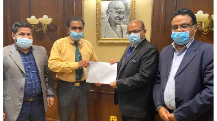 കെ.എം.സി.സി ബഹ്റൈന് ആക്ടിങ് പ്രസിഡൻറ് ഗഫൂര് കയ്പമംഗലം ഇന്ത്യന് അംബാസഡര് പിയൂഷ് ശ്രീവാസ്തവക്ക് നിവേദനം കൈമാറി. ചടങ്ങില് സംസ്ഥാന ട്രഷറര് റസാഖ് മൂഴിക്കല്, എംബസി വിങ് കൺവീനർ അബ്ദുറഹ്മാന് മാട്ടൂല് എന്നിവര് പങ്കെടുത്തു.