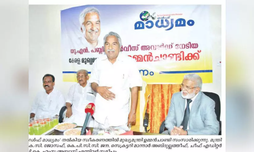 text_fieldsമനാമ: ‘ഗൾഫ് മാധ്യമ’വുമായി തുടക്കംമുതൽ അടുത്ത ബന്ധം കാത്തുസൂക്ഷിച്ച രാഷ്ട്രീയനേതാവും ഭരണാധികാരിയുമായിരുന്നു അന്തരിച്ച മുൻ മുഖ്യമന്ത്രി ഉമ്മൻ ചാണ്ടി. തന്റെ ഗൾഫ് സന്ദർശനവേളകളിലെല്ലാം അദ്ദേഹം ഗൾഫ് മാധ്യമം ഓഫിസ് സന്ദർശിക്കാൻ താൽപര്യം കാണിച്ചിരുന്നു. ഗൾഫ് നാടുകളിലെ മലയാളികളടക്കമുള്ള ഇന്ത്യൻ പ്രവാസിസമൂഹം നേരിടുന്ന പ്രശ്നങ്ങളിൽ ഗൾഫ്മാധ്യമം സ്വീകരിക്കുന്ന നിലപാട് വലിയ പ്രതീക്ഷ നൽകുന്നതാണെന്ന് 2013ൽ ബഹ്റൈനിലെ ഗൾഫ് മാധ്യമം ഓഫിസ് സന്ദർശിക്കവെ അദ്ദേഹം വ്യക്തമാക്കിയിരുന്നു. യു.എൻ പുരസ്കാരം ഏറ്റുവാങ്ങാനായിരുന്നു കേരള മുഖ്യമന്ത്രി എന്നനിലയിൽ അന്ന് അദ്ദേഹത്തിന്റെ ബഹ്റൈൻ സന്ദർശനം. പ്രവാസികളുടെ പ്രശ്നം ഉന്നയിക്കുക മാത്രമല്ല, അത് പരിഹരിക്കാനും ഒരു പത്രമെന്നനിലയിൽ ഗൾഫ് മാധ്യമം ശ്രദ്ധ കാണിക്കുന്നുണ്ടെന്നും ഇത് മാധ്യമങ്ങൾക്ക് മാതൃകയാണെന്നും അദ്ദേഹം ചൂണ്ടിക്കാട്ടിയിരുന്നു. ബഹ്റൈനിലെ ഭരണാധികാരികൾ മലയാളി സമൂഹത്തെ വിലമതിക്കുന്നതായാണ് സന്ദർശന അനുഭവങ്ങളിലൂടെ മനസ്സിലായത്.