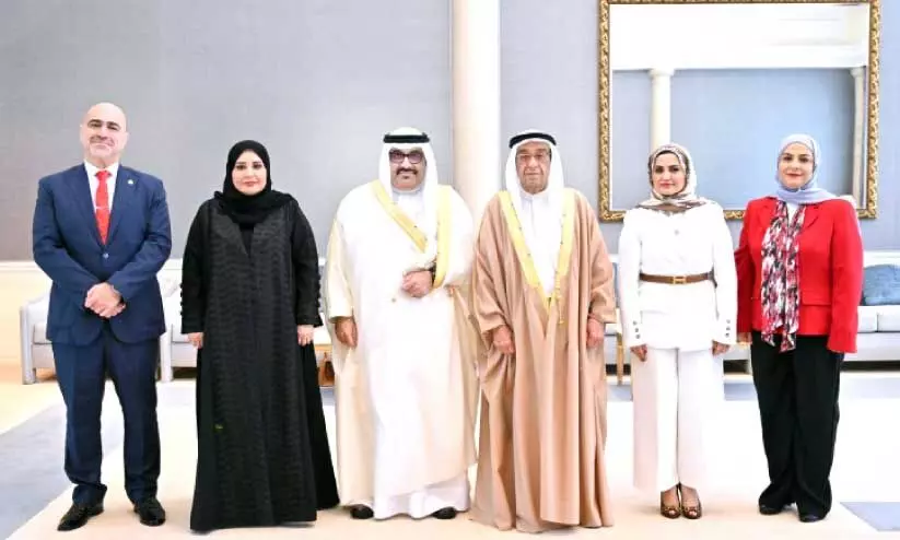 text_fieldsവിദ്യാഭ്യാസ മന്ത്രി ഡോ. മുഹമ്മദ് ബിൻ മുബാറക് ജുമുഅയെ ഹമദ് രാജാവിന്റെ പ്രത്യേക പ്രതിനിധി ശൈഖ് മുഹമ്മദ് ബിൻ മുബാറക് ആൽ ഖലീഫ സ്വീകരിക്കുന്നു