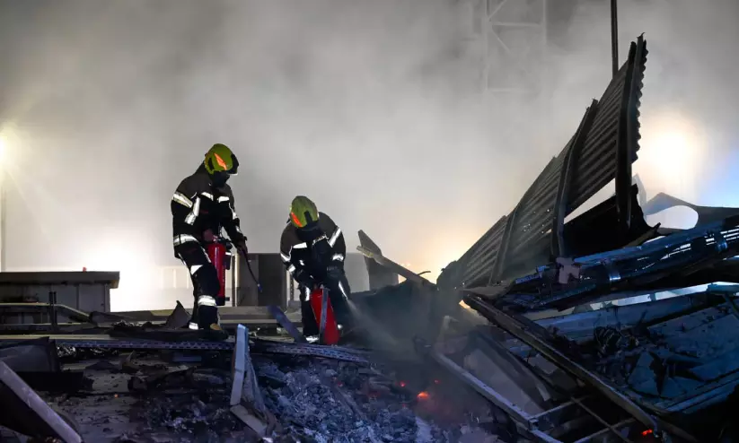 text_fieldsകെട്ടിടത്തിലുണ്ടായ തീപ്പിടിത്തം സിവിൽ ഡിഫൻസ് സംഘം അണയ്ക്കുന്നു