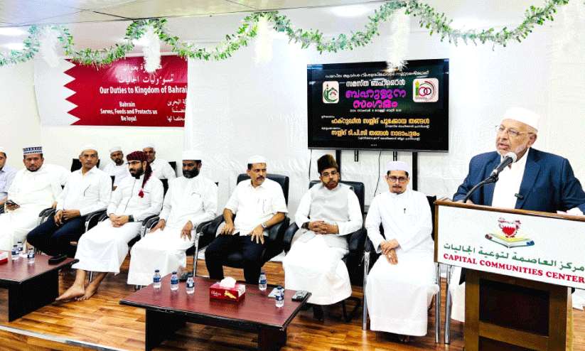 സമസ്ത ആദർശ വിശുദ്ധിയോടെ നൂറ്റാണ്ടിലേക്ക് എന്ന ശീർഷകത്തിൽ സമസ്ത ബഹ്റൈൻ കേന്ദ്ര കമ്മിറ്റി സംഘടിപ്പിച്ച ബഹുജന സംഗമത്തിൽ മുഖ്യ പ്രഭാഷണം നടത്തുകയായിരുന്നു അദ്ദേഹം. സംഗമം സമസ്ത ബഹ്റൈൻ പ്രസിഡന്റ് ഫഖ്റുദ്ദീൻ സയ്യിദ് പൂക്കായ തങ്ങൾ ഉദ്ഘാടനം ചെയ്തു. സമസ്ത വർക്കിങ് പ്രസിഡന്റ് വി.കെ. കുഞ്ഞിമുഹമ്മദ് ഹാജി അധ്യക്ഷതവഹിച്ചു.
