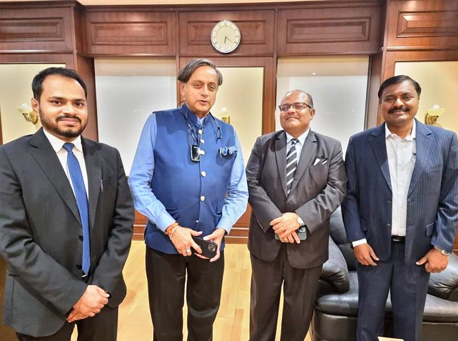 ശശി തരൂർ എം.പി ഇന്ത്യൻ അംബാസഡർ പിയുഷ് ശ്രീവാസ്തവയെ സന്ദർശിച്ചപ്പോൾ
