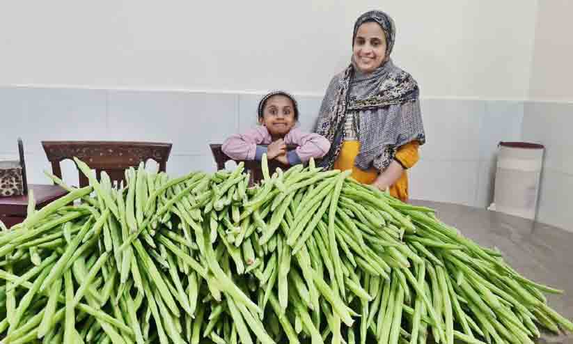 text_fieldsവിളവെടുത്ത മുരിങ്ങക്കായ്ക്കൊപ്പം തസ്നീം ഫസലും മകൾ ആയിഷയും