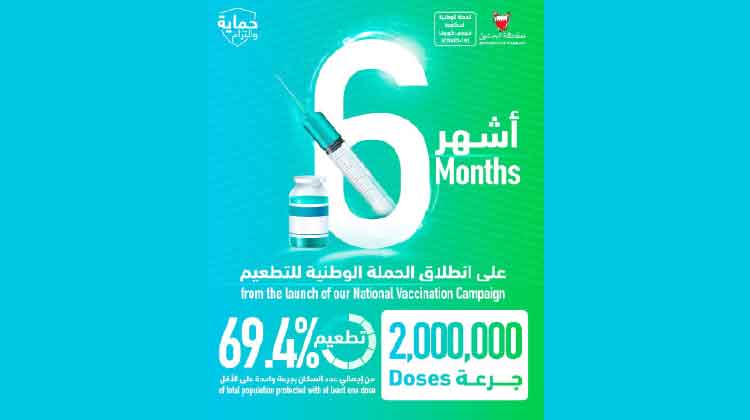 രാജ്യത്തെ ജനസംഖ്യയിൽ 69.4 ശതമാനം പേർക്കും ഒരു ഡോസെങ്കിലും വാക്സിൻ നൽകാൻ കഴിഞ്ഞത് കാമ്പയിെൻറ വിജയമാണ്. കഴിഞ്ഞ വർഷം ഡിസംബർ 13നാണ് ബഹ്റൈനിൽ കോവിഡ് വാക്സിന് രജിസ്ട്രേഷൻ ആരംഭിച്ചത്. ഡിസംബർ 20 മുതൽ വാക്സിൻ നൽകിത്തുടങ്ങി. സമൂഹത്തിെൻറ ആരോഗ്യം സംരക്ഷിക്കാൻ സ്വദേശികൾക്കും പ്രവാസികൾക്കും സൗജന്യമായി കോവിഡ് വാക്സിൻ നൽകാൻ രാജാവ് ഹമദ് ബിൻ ഇൗസ ആൽ ഖലീഫ ഉത്തരവ് പുറപ്പെടുവിച്ചതിെൻറ അടിസ്ഥാനത്തിലാണ് രാജ്യത്ത് വാക്സിനേഷൻ കാമ്പയിൻ ആരംഭിച്ചത്.