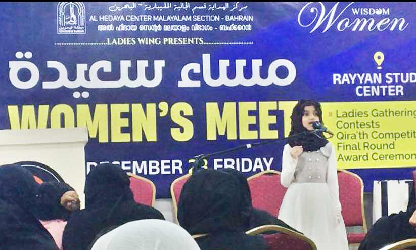 text_fieldsമനാമ: സുസ്ഥിരമായ കുടുംബബന്ധത്തിന് പക്വമതിയായ മത വിജ്ഞാനമുള്ള സ്ത്രീകളുടെ സ്ഥാനം അനിവാര്യമാണെന്ന് വിസ്ഡം ബഹ്റൈൻ വനിത ചാപ്റ്ററിന്റെ നേതൃത്വത്തിൽ സംഘടിപ്പിച്ച വനിത സംഗമം വിലയിരുത്തി. റയ്യാൻ സ്റ്റഡി സെന്റർ ഹാളിൽ നടന്ന പരിപാടിയിൽ നൂറുകണക്കിന് സ്ത്രീകളും കുട്ടികളും വിവിധ മത്സര പരിപാടികളിൽ പങ്കെടുത്തു.
