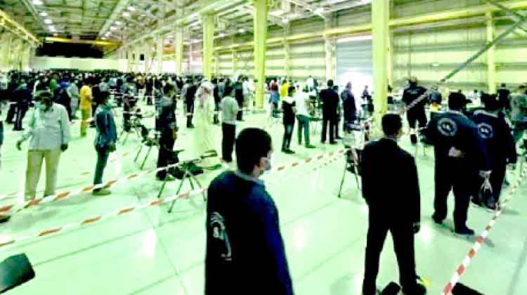 text_fieldsകെ.എൻ.പി.സി കരാർ തൊഴിലാളികൾ വാക്സിനേഷന് വരിനിൽക്കുന്നു