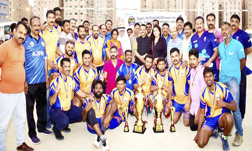 കുവൈത്ത് സിറ്റി: ആലപ്പുഴ ജില്ല പ്രവാസി അസോസിയേഷനും (അജ്പാക്) കേരള സ്പോർട്സ് ആൻഡ് ആർട്സ് ക്ലബും സംയുക്തമായി സംഘടിപ്പിച്ച വോളിബാൾ ടൂർണമെന്റിൽ ബൂബിയാൻ സ്ട്രൈക്കേഴ്സ് ജേതാക്കൾ. എം.കെ.വി.എസ്. മഹ്ബുള്ള രണ്ടാമതെത്തി. ഇന്ത്യ, നേപ്പാൾ, ശ്രീലങ്ക രാജ്യങ്ങളിൽ നിന്നുള്ളവർ അണിനിരന്ന എട്ടു ടീമുകൾ ടൂർണമെന്റിൽ പങ്കെടുത്തു.