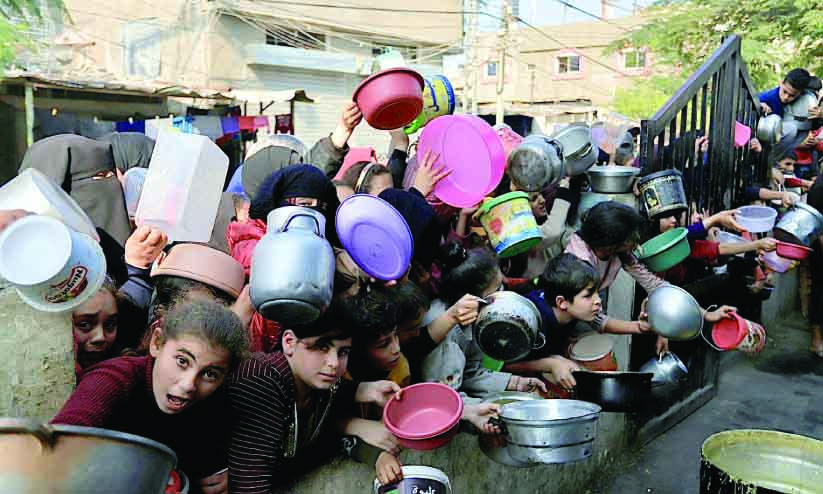 text_fieldsഗസ്സയിൽ ഭക്ഷണത്തിനായി പാത്രങ്ങളുമായി കാത്തുനിൽക്കുന്ന കുട്ടികളും സ്ത്രീകളും