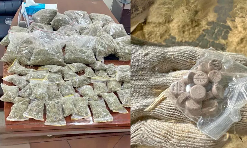 text_fieldsപിടികൂടിയ കഞ്ചാവും ഗുളികകളും