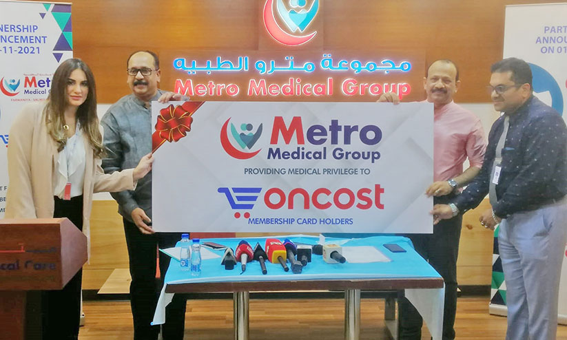 സാൽമിയ സൂപ്പർ മെട്രോയിൽ നടന്ന വാർത്തസമ്മേളനത്തിൽ മെട്രോ മെഡിക്കൽ കെയർ ഗ്രൂപ് ചെയർമാൻ മുസ്തഫ ഹംസ, ഒാൺകോസ്റ്റ് ചീഫ് ഒാപറേറ്റിങ് ഒാഫിസർ രമേശ് ആനന്ദദാസ് എന്നിവരെ കൂടാതെ മെട്രോ അഡ്മിൻ ആൻഡ് ബിസിനസ് ഡെവലപ്മെൻറ് മാനേജർ ഫൈസൽ ഹംസ, ഒാൺകോസ്റ്റ് മാർക്കറ്റിങ് മാനേജർ രിഹാം നാസർ എന്നിവരും സംബന്ധിച്ചു.